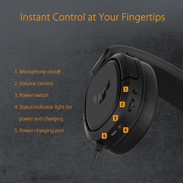Det lätta TUF Gaming H1 trådlösa headsetet väger endast 295 gram och är designat för att hålla dig bekväm under längre spelsessioner.