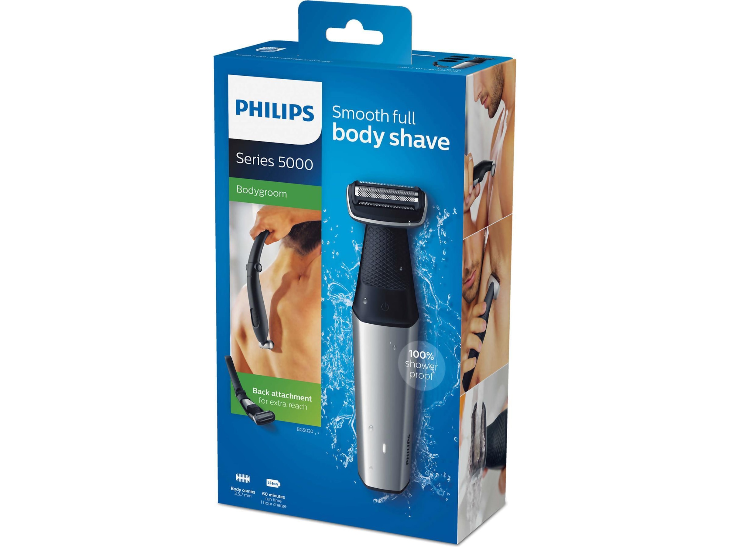Med Philips BG5020 kan du enkelt raka ryggen själv med det medföljande extra långa ryggtillbehöret. Du kommer enkelt åt att raka även längre ner på ryggen, utan besvär!