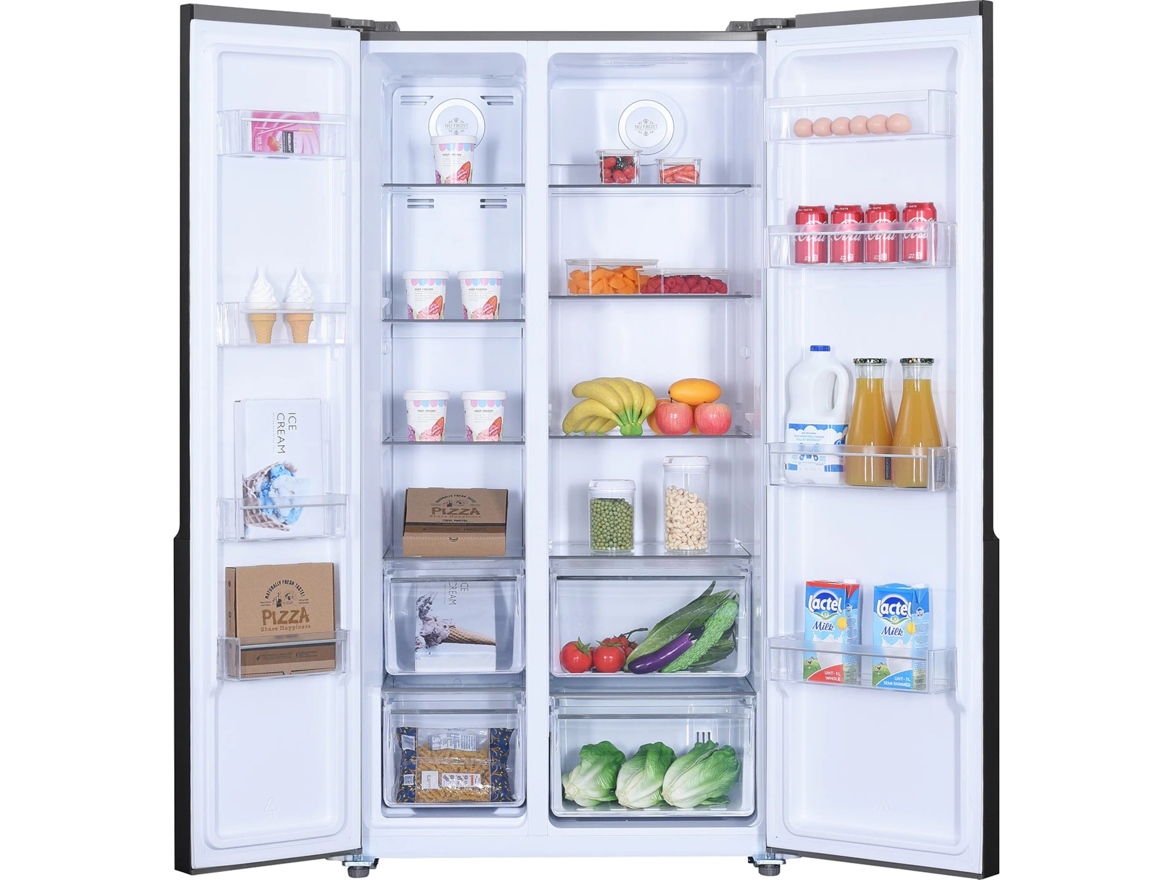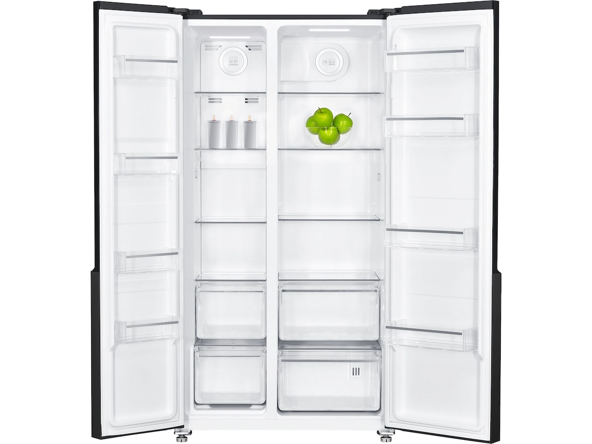 Kylskåpet har en kapacitet på 347 liter och frysen har en kapacitet på 185 liter. Totalt nettokapacitet på 532 liter gör detta till ett Side by Side-skåp med enorm kapacitet för dina drycker och matvaror.