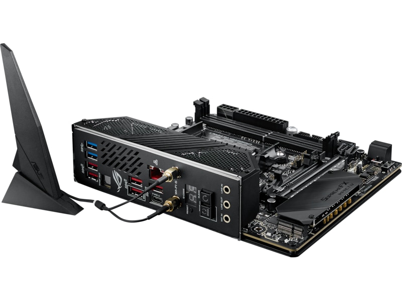 | Inkluderade tillbehör | RGB riktbar förlängningskabel för LED, ROG tackkort, Extern antenn, Gummidyna, ROG SO-DIMM.2-expansionskort med kylfläns, 2 x M.2-skruvar, RGB (RGBW) förlängningskabel till LED-remsa, Stort ROG-klistermärke, ROG-paneler |