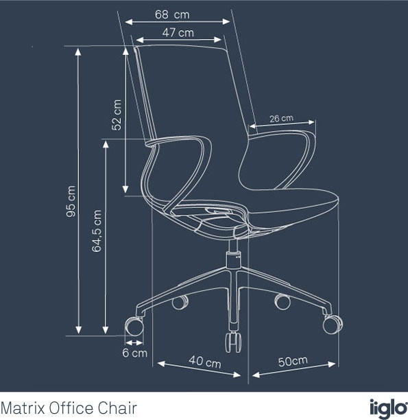 iiglo Matrix passar perfekt på alla kontor och konferensrum med sin eleganta, prisbelönta design. De mjuka, böjda linjerna är estetiskt tilltalande och passar perfekt med kroppen, vilket säkerställer en bekväm sittposition. Kontorsstolen har en robust ram som klarar en vikt på upp till 125 kg. Dessutom är iiglo Matrix täckt av ett slitstarkt men bekvämt nättyg med hög densitet.