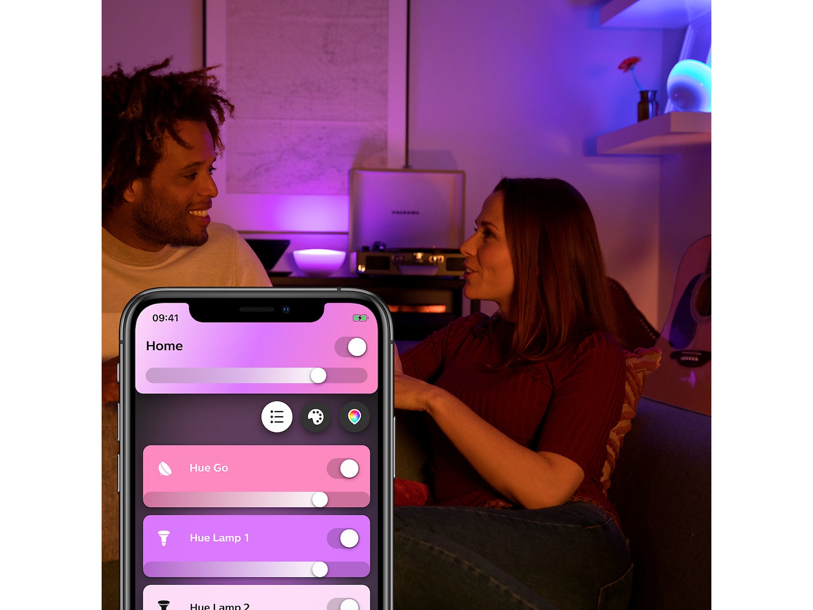 Du kan enkelt tända, släcka och byta färg på lampan med hjälp av knappen på baksidan. Du kan även koppla din Go till en Hue Bridge för full kontrollen via Hue-appen eller någon av systemets fantastiska accessoarer.