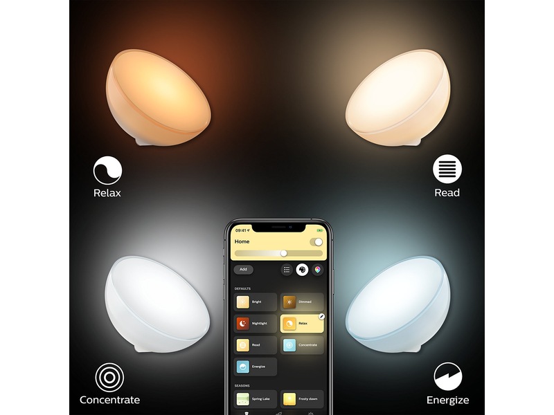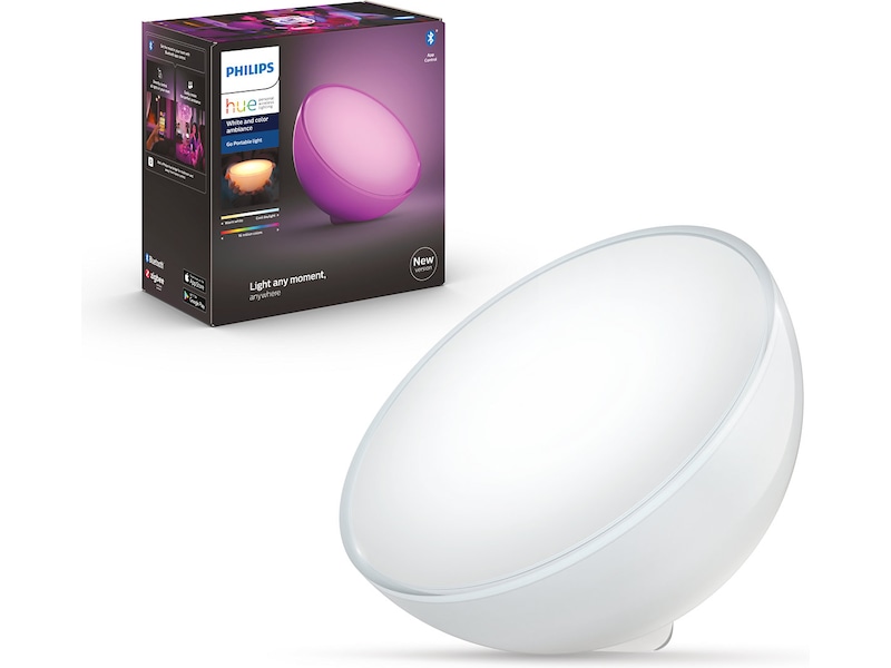 Den unika lampan Philips Hue Go är en portabel och trådlös smart bordslampa som erbjuder fantastisk funktionalitet. Ta med dig den ut på balkongen eller terrassen, på resor och utflykter eller bär runt den helt fritt i hemmet för att skapa den perfekta stämningen med hjälp av direkt och indirekt stämningsbelysning som kan bli en del av alla dina dagliga rutiner.