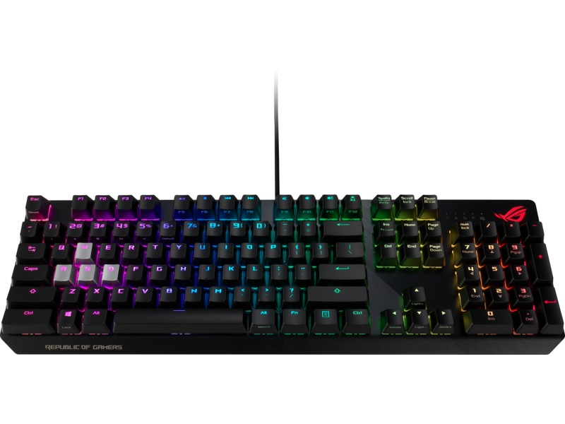 | Inkluderade tillbehör | ROG-logoklistermärke, Tangenthättdragare, Tangenthättor |