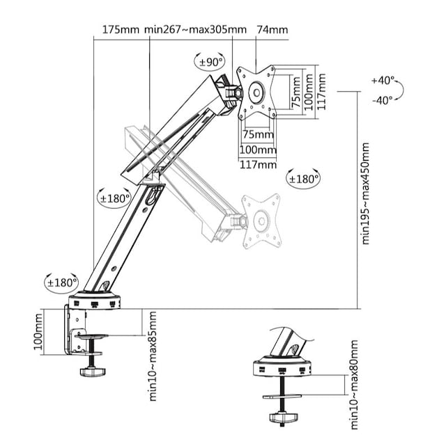 Svive Aegaeon enkel skärmarm