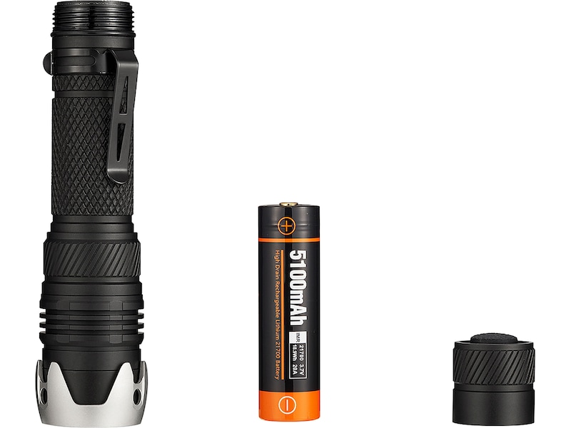 Ficklampan kan drivas av två olika ström källor. Den kommer med ett laddningsbart Li-ion 21700 batteri på 5100 mAh som kan laddas genom en direkt micro-USB port; hur som helst, den kan användas med ett uppladdningsbar li-ion 18650 engångsbatteri, vilket inte är inkluderat.