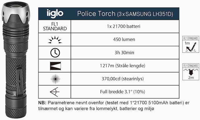 - Upp till 450 lumen används av polisen i Hong Kong