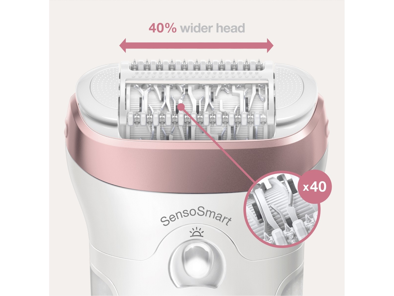 • UTAN ANSTRÄNGNING: Epilator för kvinnor med brett, rörligt huvud för enklare och mer effektiv hårborttagning