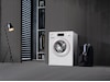 Flexibel påfyllning av kläder: Oavsett om det är ett par jeans, en blus eller bara en strumpa: Med AddLoad-funktionen kan du enkelt lägga till fler kläder även efter att programmet har startat - ända till precis innan programmets slut. Du kan sedan lägga i eller ta bort kläder som bara ska sköljas eller centrifugeras. Enkel hantering: Tryck på "Starta/Ladda i fler kläder" så öppnas dörren.