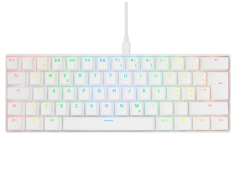 Svive Triton Mini är precis rätt tangentbord för alla minimalistiska spelare där ute. Det här tangentbordet är utrustat med blå taktila och klickbara switchar och ger dig en tillfredsställande hörbar feedback. Dess 60-procentiga 62-tangentförsedda nordiska layout och praktiska design gör det till ett perfekt komplement till din uppsättning hemma eller när du är på språng, samt ger dig ett snyggt och organiserat skrivbord var du än är. Stick ut i mängden med ditt nya minimalistiska vita Svive Triton!