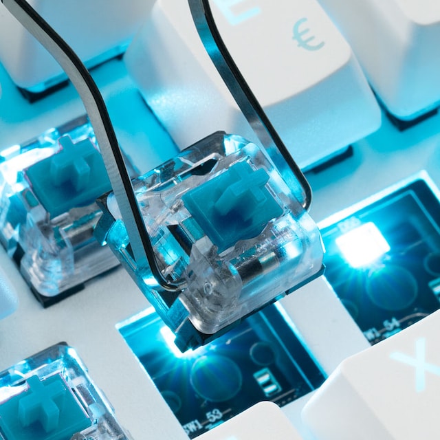 Den blå omkopplaren ger ett klickljud för varje tangenttryckning, vilket ger dig signifikant hörbar och taktil feedback. Denna typ av omkopplare kräver 50 g aktiveringskraft och har en högre återställningsläge. Med en livslängd på 70 000 000 tangenttryckningar är dessa omkopplare byggda för tillförlitlighet och prestanda under många år framöver. Svive Triton-serien ger dig möjlighet att byta omkopplare så att du kan anpassa dig! Tilldela olika MX-omkopplare till valfri tangent på tangentbordet!