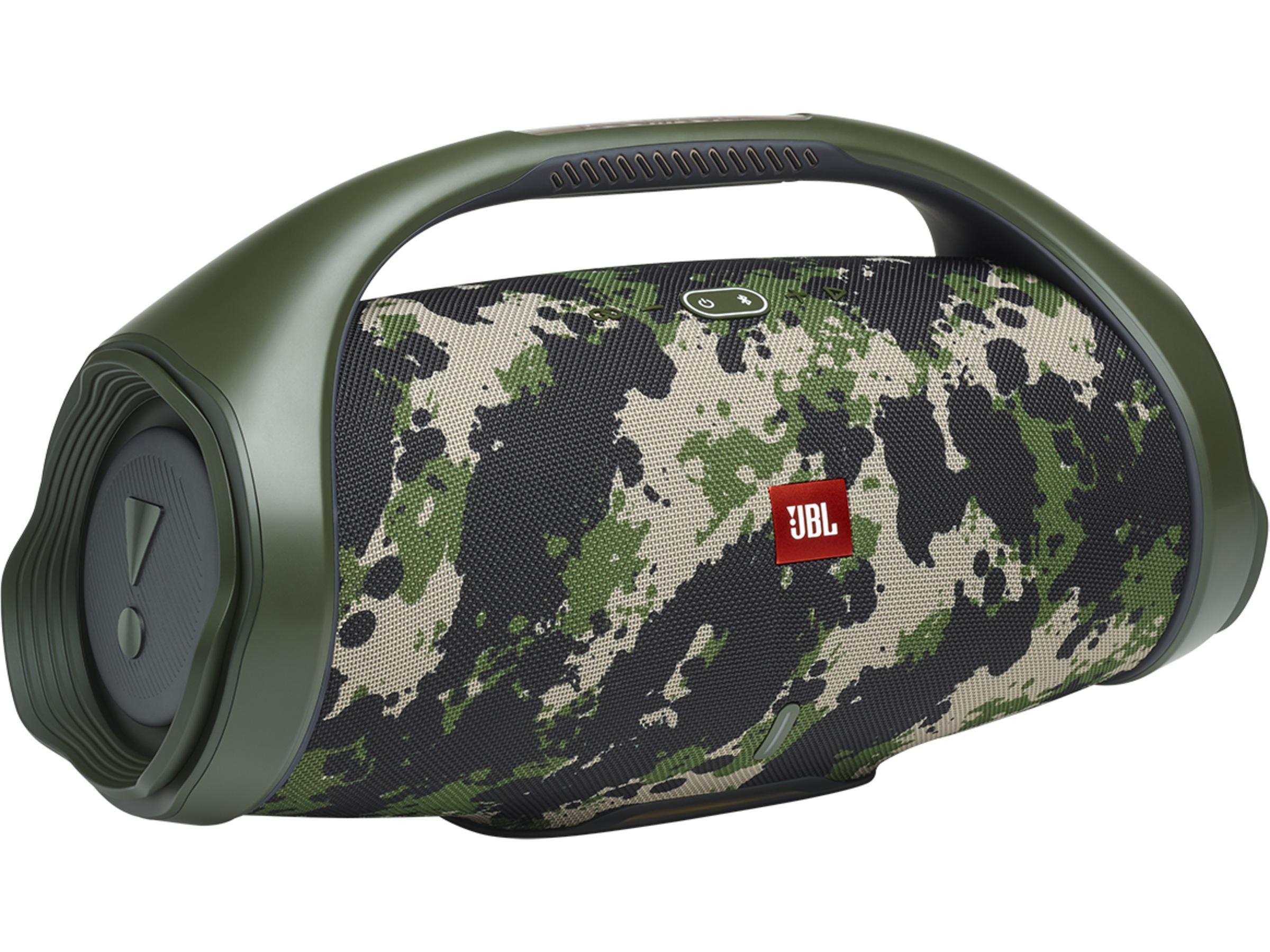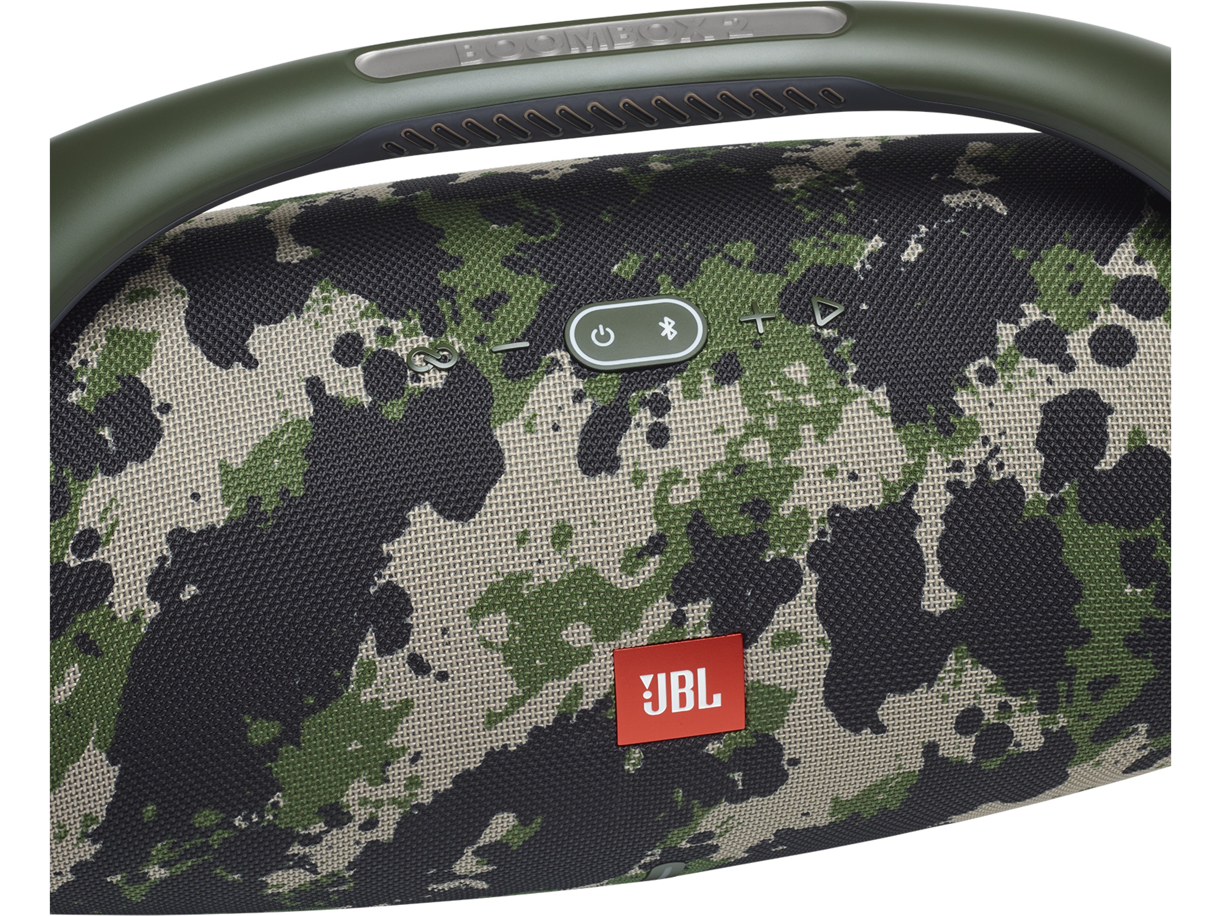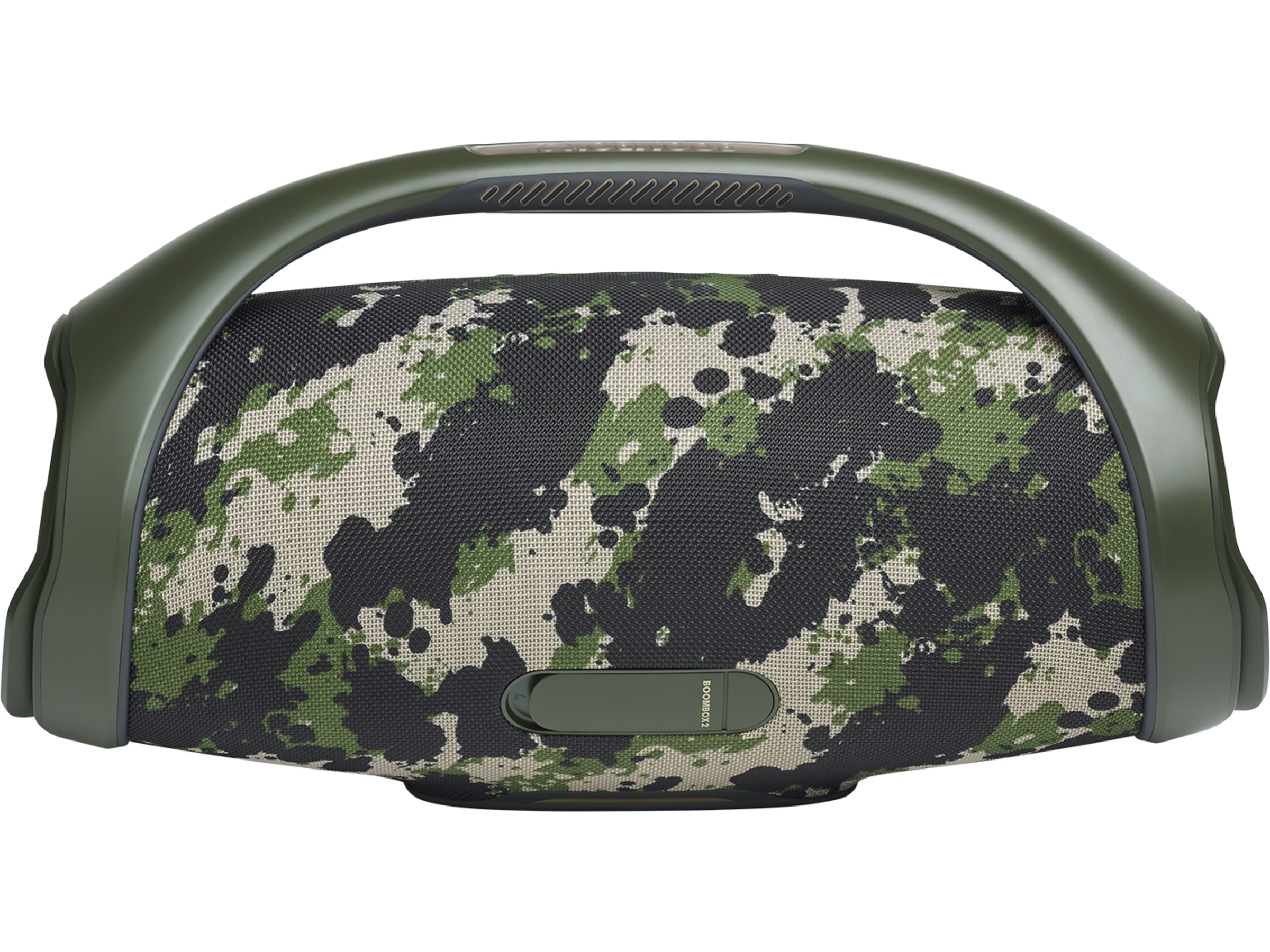 Slank, djärv, kraftfull. Med sitt ikoniska grepphandtag och eleganta sidofällningar kan JBL Boombox 2 följa med dig vart du än går
