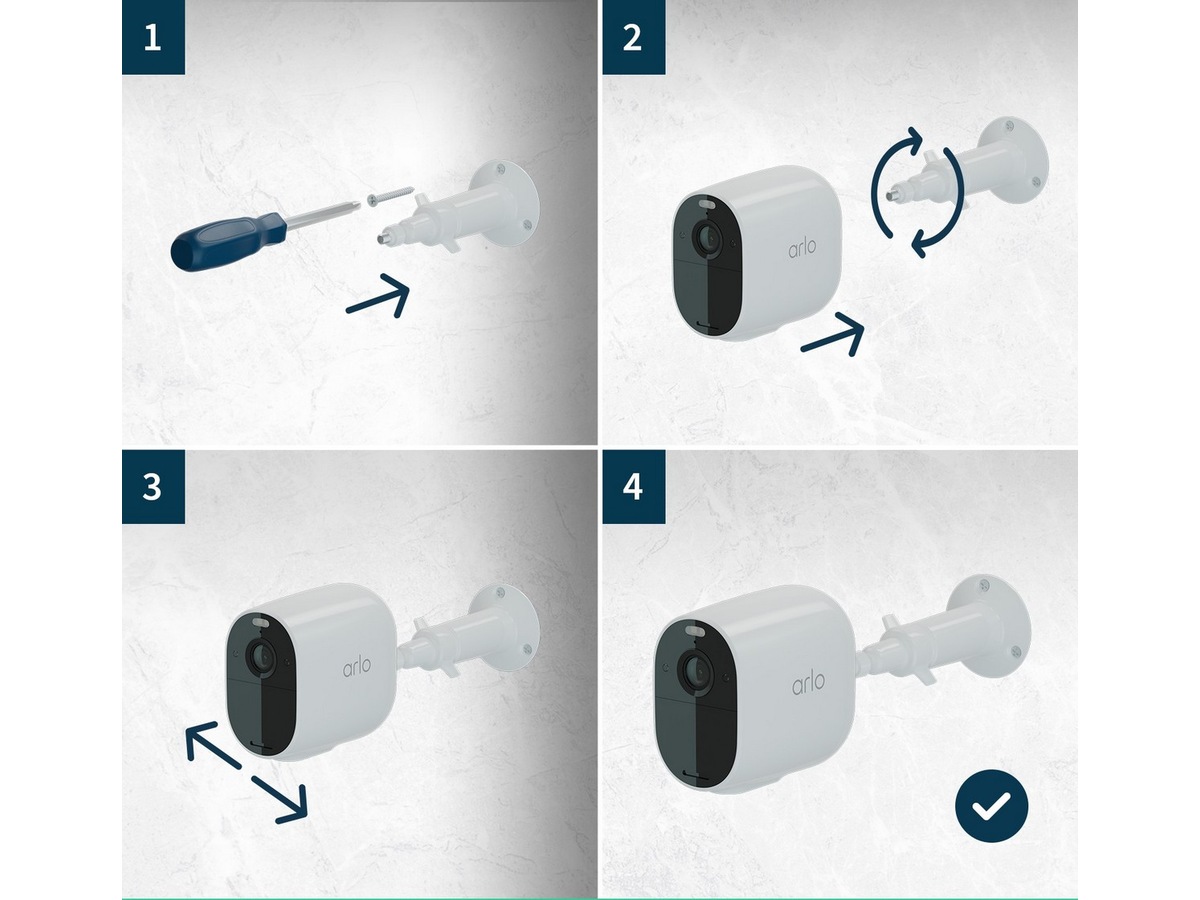 Direkt efter installation får du grundläggande rörelsenotifikationer som skickas till din mobil och livevideo i tydlig 1080p upplösning. Eller välj en Arlo Secure-prenumeration för att spara dina videoklipp i molnet och få tillgång till dem när som helst via biblioteket i appen. Med tvåvägsljud kan du tala med alla som om du befann dig i samma rum och utlösa sirenen för att skrämma iväg inbrottstjuvar.
