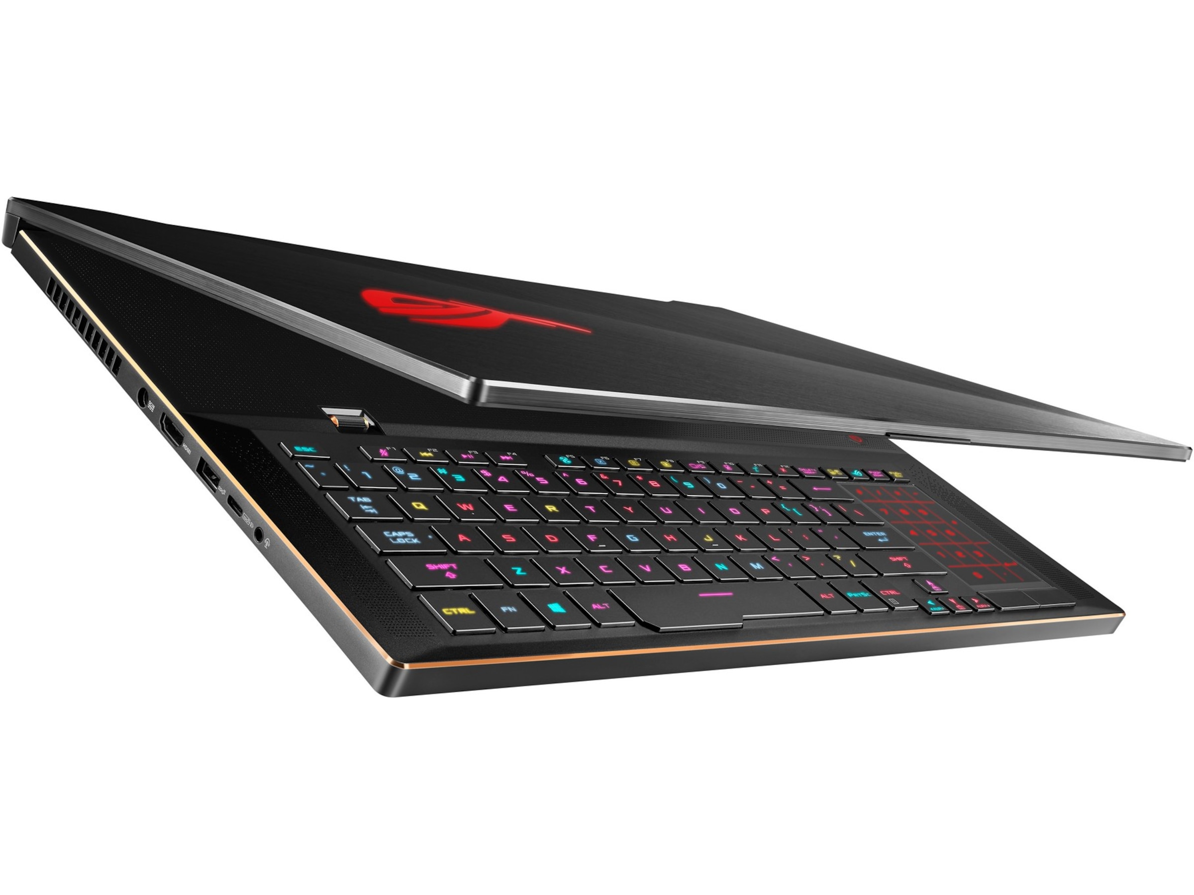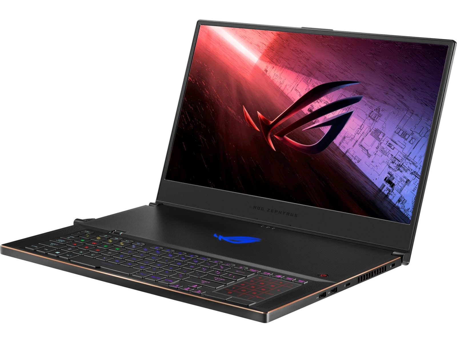 Resultatet av allt arbete och omtanke som ligger bakom Zephyrus S design är att det är en av de mest mångsidiga och högpresterande datorerna som finns. Skärmen är på 144Hz, 3ms och har 100% sRGB färgrymd – det betyder att den lämpar sig både som en kraftfull spelskärm och funkar lika bra för att arbeta med bild och video. Det Aura-utrustade tangentbordets placering och tangenternas layout ger dig upplevelsen av att du sitter med ett tangentbord som om det vore till en desktop – det gör att det är perfekt både för snabba spel och skriva under långa stunder.