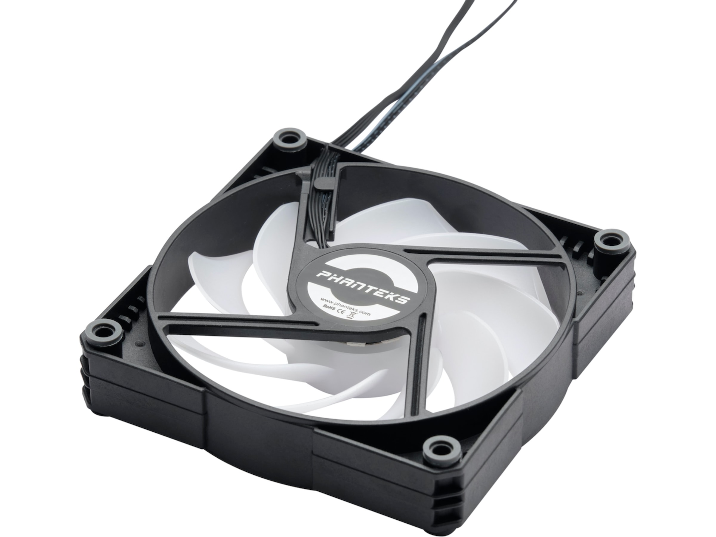 Egenskaper Daisy-chain design, PWM-kontroll, Ljudabsorberande gummikuddar, Design med 9 fläktblad, ARGB-fläkt