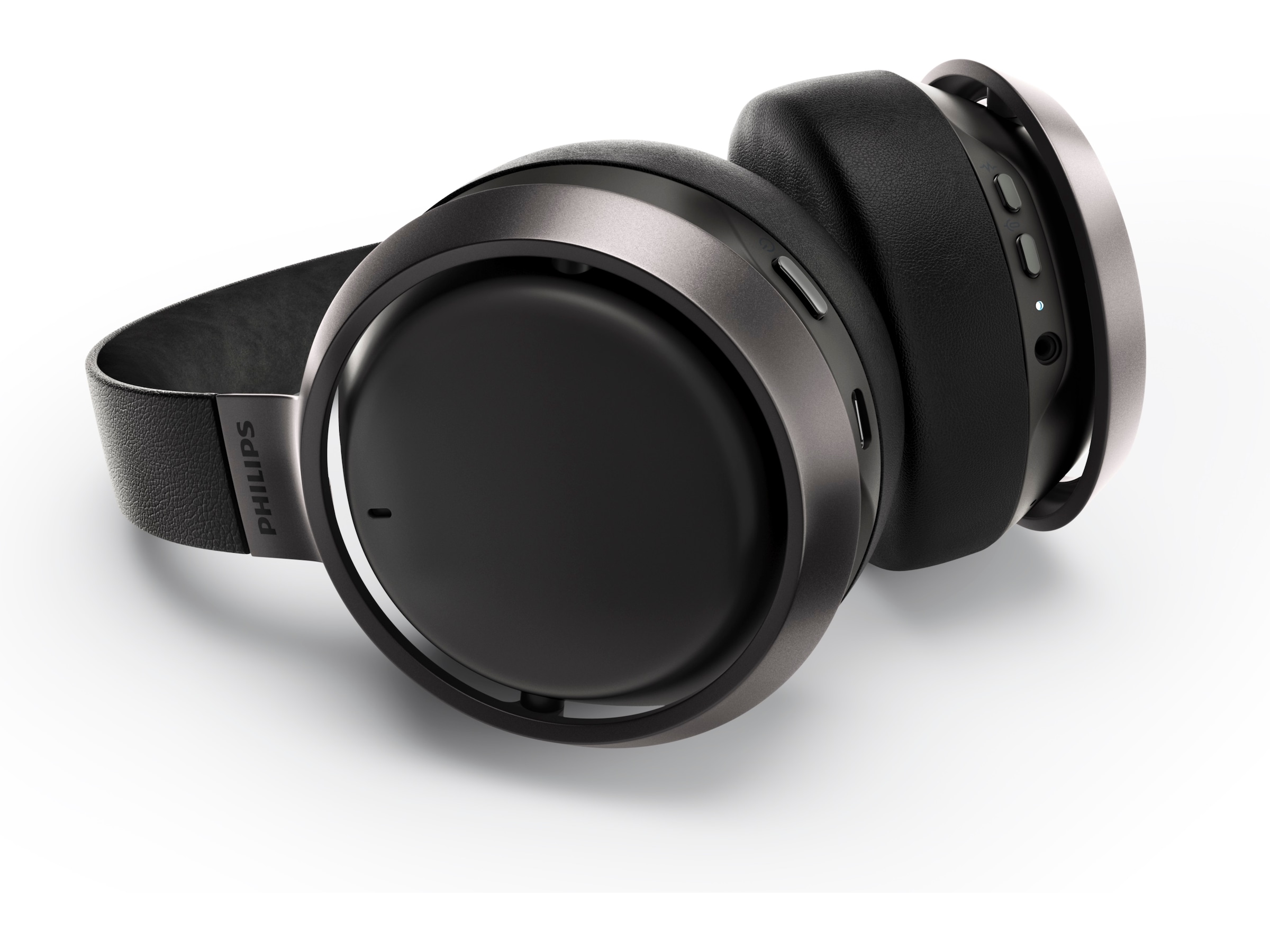 Lätt aluminium och Muirhead-läder med ansvarsfullt ursprung gör att de här trådlösa hörlurarna känns lika förstklassiga som ljudet. Öronkåpornas aluminiumringar är i matt satinsvart med präglad Philips Fidelio-märkning.