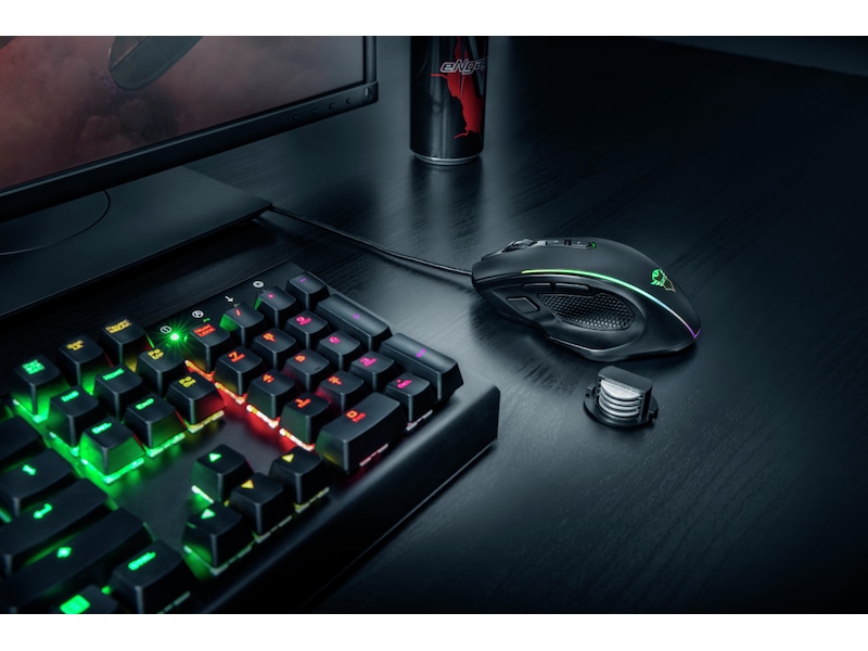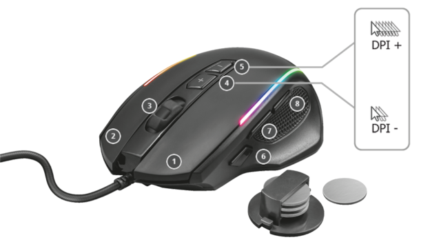 Den optiska sensorn med hög precision kommer att driva dina spel till nya höjder. Justera enkelt dpi (200 - 10 000) efter personliga önskemål med hastighetsvalknappen och justera musens vikt med de fyra metallvikterna på 4 gram vardera. Du klickar dig fram till seger på nolltid.