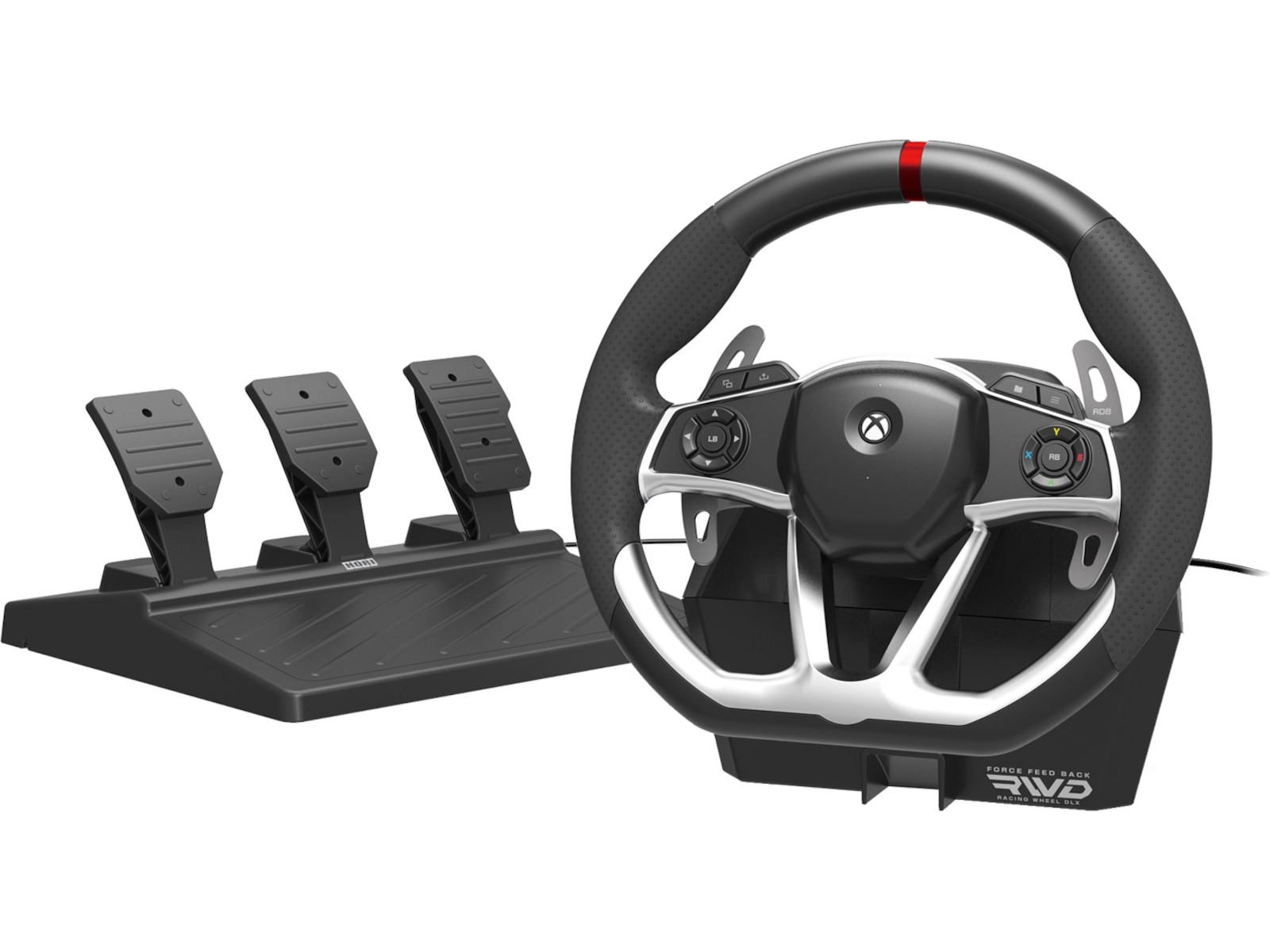 HORI erbjuder det bästa inom byggkvalitet, anpassningsalternativ och autentisk tävlingssimulering med racingratten Force Feedback DLX som är utformad för Xbox-serien X|S. HORI:s Tokyo-designteam har tagit med alla funktioner och kvalitet på en racingratt i full storlek med stora och stabila fotpedaler och kraftiga metallskovlar. Kraftfull men ändå fullt justerbar kraftåterkoppling tar dig in i loppet med vår nydesignade mekanism för återkoppling av dubbla motorstyrkor. Force Feedback Racingratten DLX är utformad för Xbox-serien X|S och kläms säkert fast på ditt bord eller racingrattstativ med robusta klämmor och ståldelar. Helt programmerbar och justerbar - finjustera andra inställningar som dödzon, pedalkänslighet, rotationsvinkel och mycket mer. Officiellt licensierad av Microsoft.