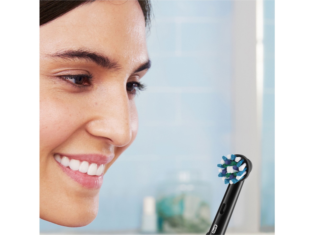 Oral-B:s runda huvud anpassar sig till varje tand för renare tänder och friskare tandkött jämfört med en manuell tandborste av standardtyp.