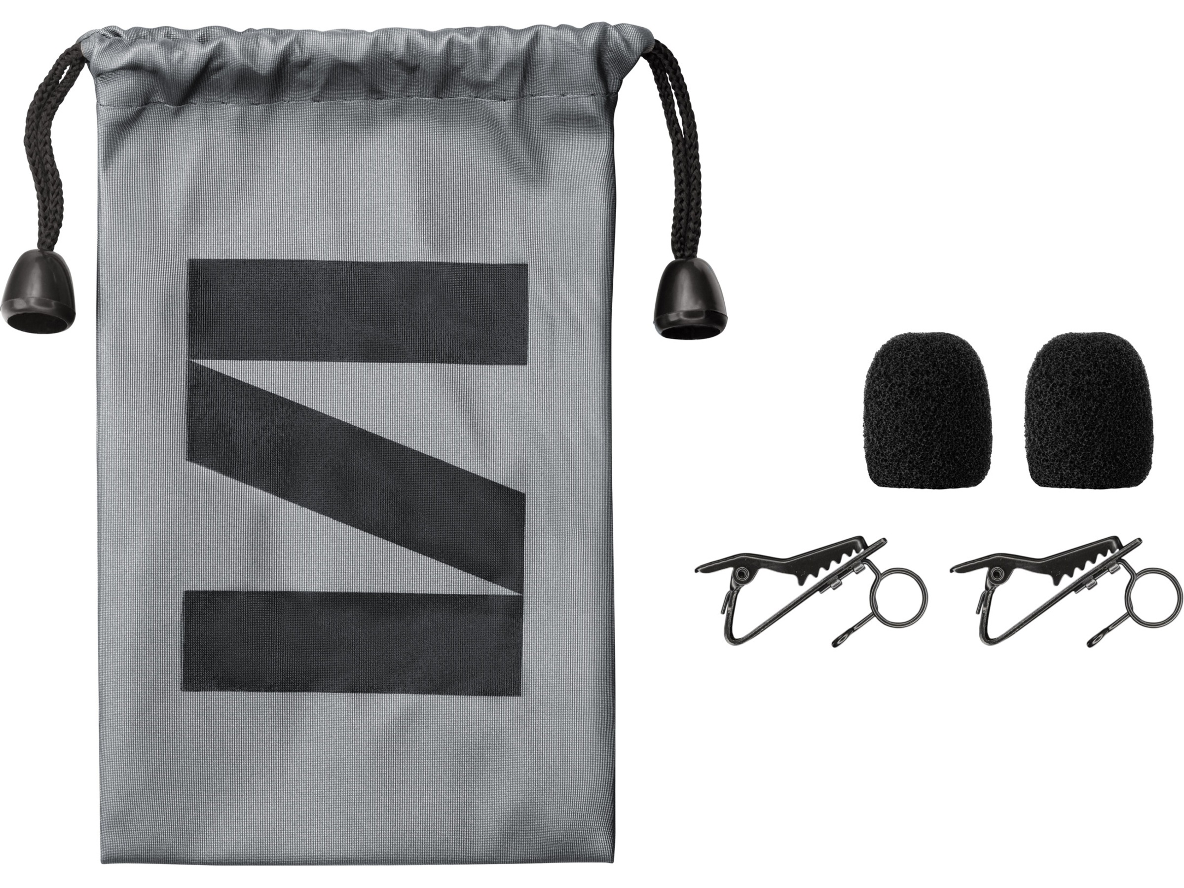 - 2 skumvindskydd : hjälper till att minska brus från vind och minimerar effekten av klusiler,