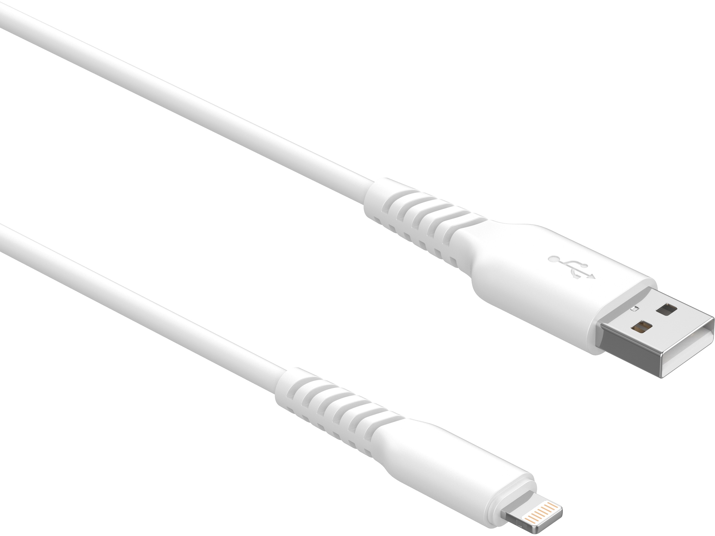 Kabeln är gjord av extra slitstarkt material med en helt gjuten kontakt och böjskydd som sitter på kabeln och har testats och godkänts för mer än 30 000 böjningar. Kabeln kan anslutas till valfri USB-port eller laddare (kabeltyp: USB-A) och laddar alla enheter med lightningkontakt.