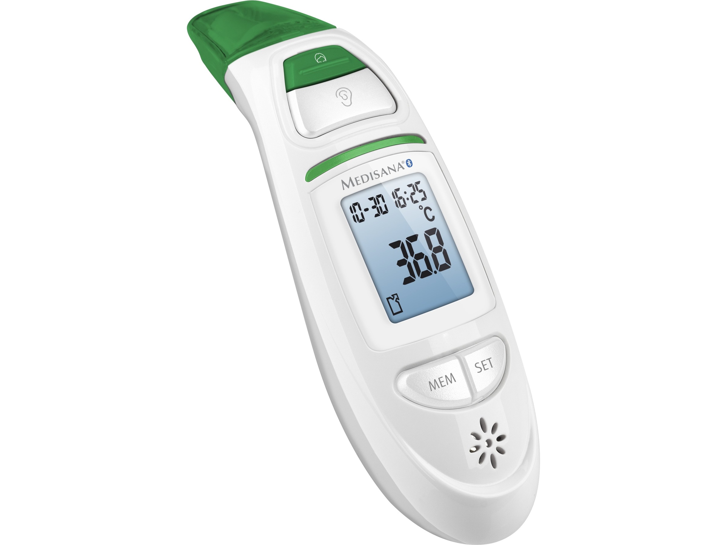 - Exakt mätning av kroppstemperaturen i örat och på pannan på några sekunder