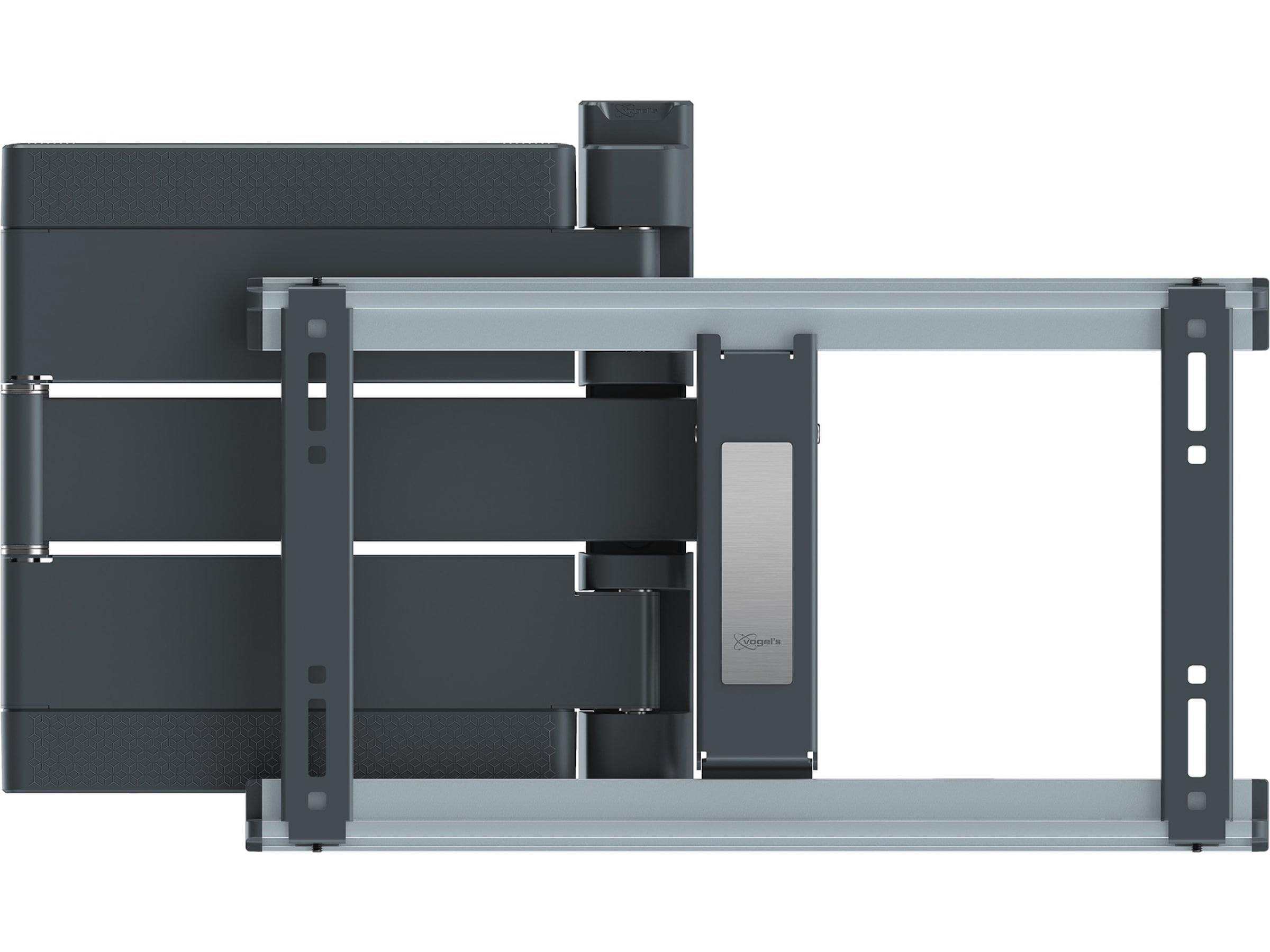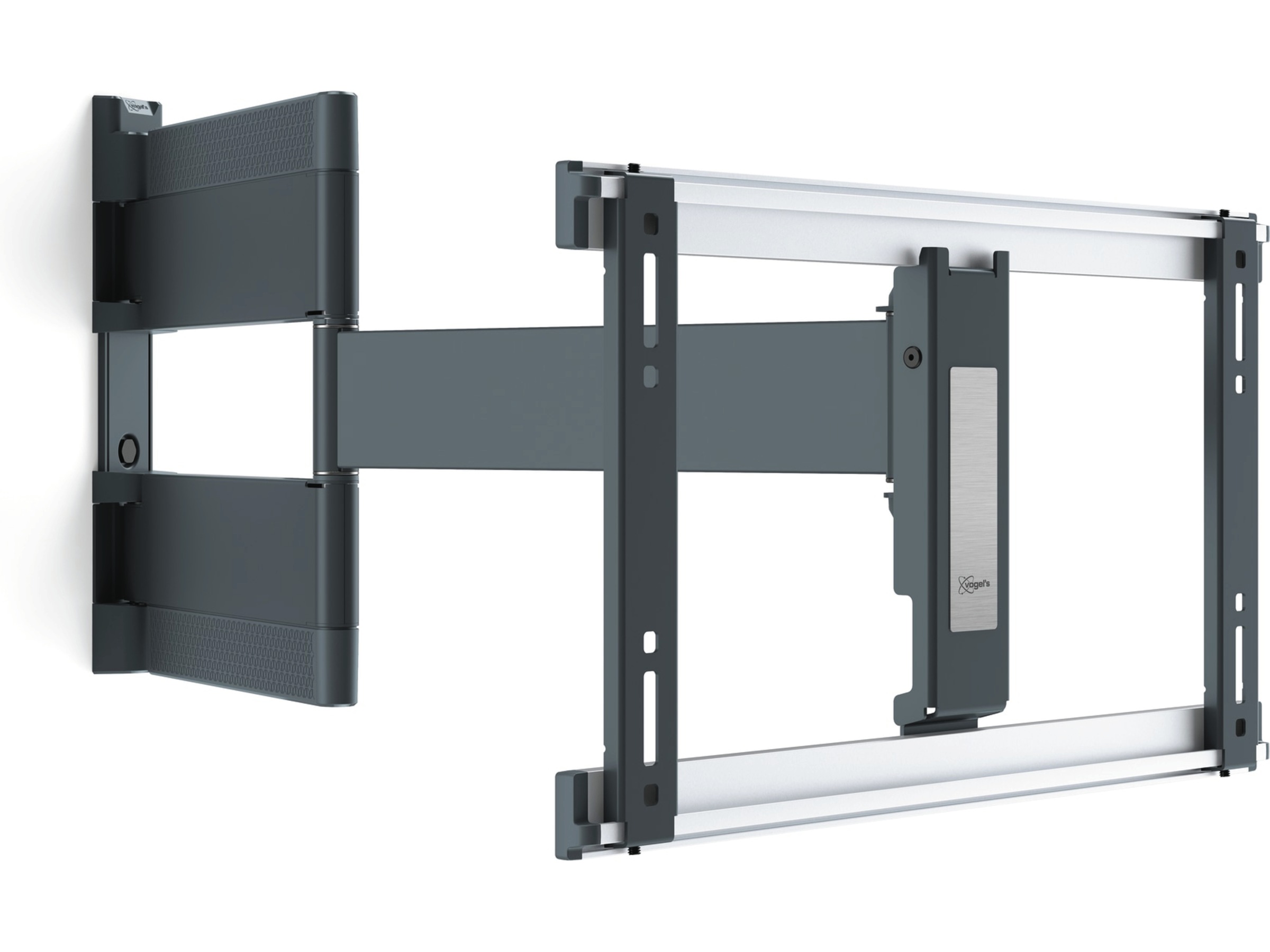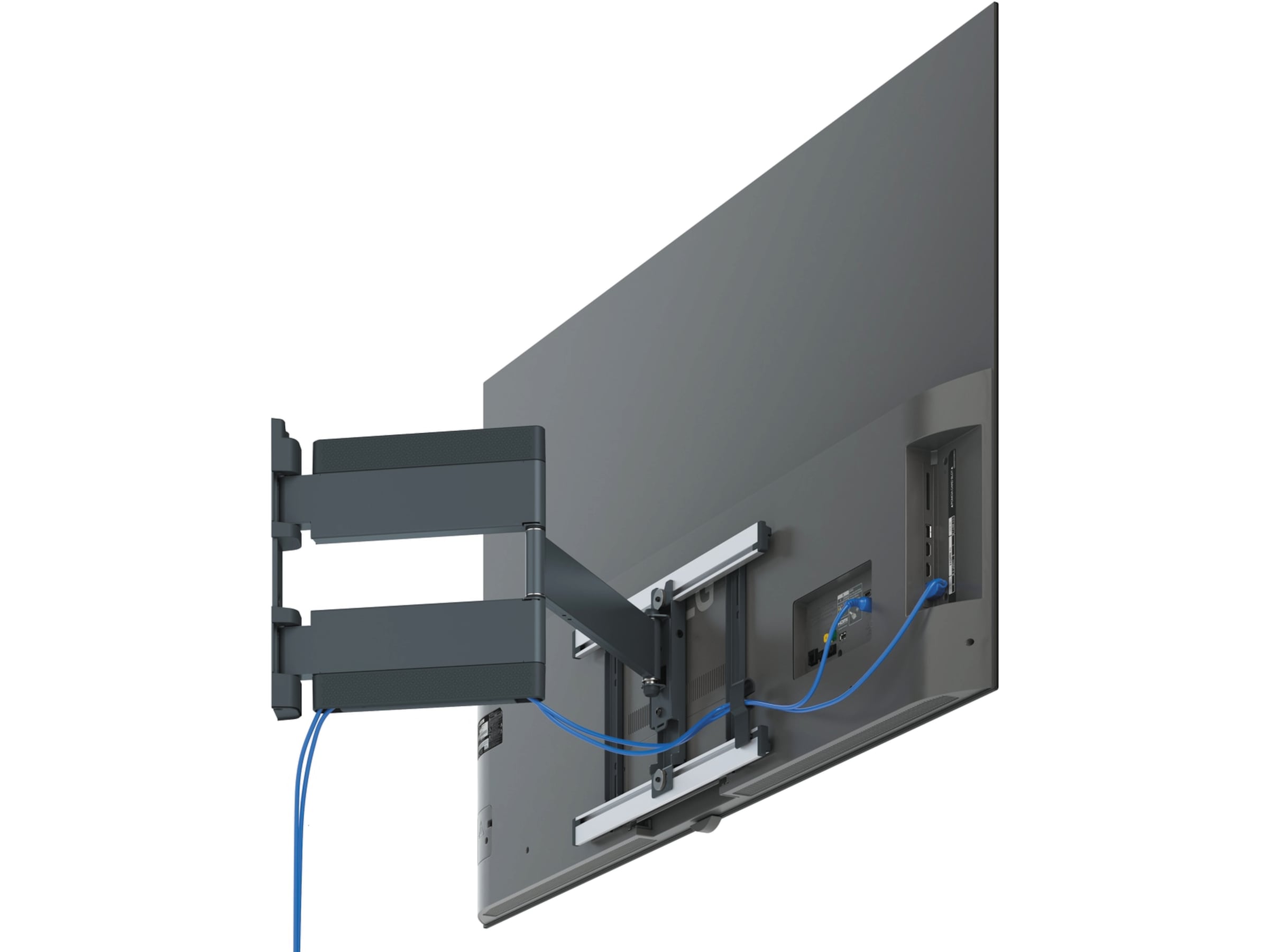 Det fullt rörliga THIN-väggfästet erbjuder också mycket flexibla svängmöjligheter, tack vare de mycket långa armarna, som rör sig smidigt och elegant. Du använder det fullt rörliga THIN intuitivt och genom det smidiga gångjärnet reagerar TV-väggfästet enkelt på dina korrigeringar.