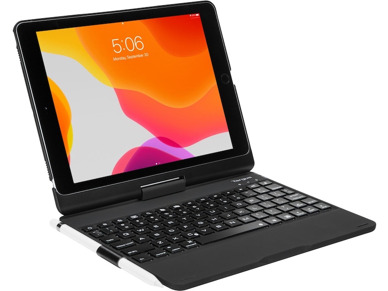 VersaType™ för iPad® (8:e och 7:e generationen) 10,2-tums, iPad Air® 10,5-tums, iPad Pro 10,5-tums ger funktionalitet och skydd till din enhet - samtidigt som den lägger till väldigt lite bulk eller vikt. Det hårda skalfodralet erbjuder avsevärt rep- och stötskydd när det är stängt och öppnar upp en värld av produktivitet. Tangentbordet är utformat för att ge en laptopliknande skrivupplevelse med en fullständig QWERTY-layout.
