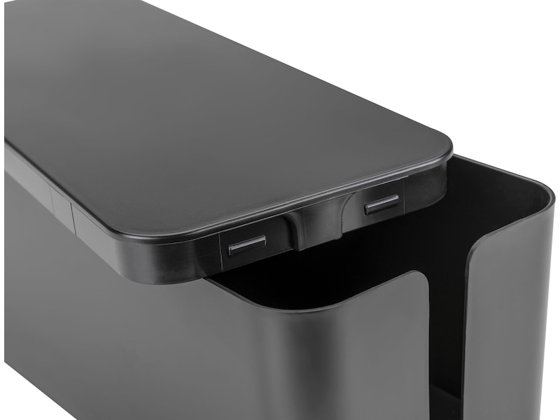 Få det organiserat och prydligt vid din gamingrigg. Lägg alla sladdar, förlängningssladdar och adaptrar i boxen och stäng locket för att gömma undan alla kablar och skydda dem från damm och oavsiktligt spill av vatten. Den minimalistiska designen och den svarta färgen gör att kabelhanteringsboxen passar in i vilken inredning som helst vid din gamingrigg. Få slut på oredan kring kablarna idag!