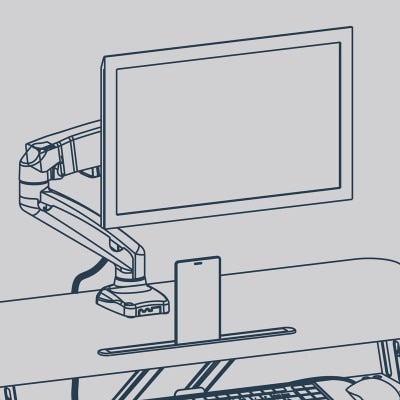 Det förborrade hålet på ovansidan av iiglo Desk Stand gör det extra enkelt att montera ett bildskärmsfäste med en öljett eftersom du inte måste borra några hål på egen hand!