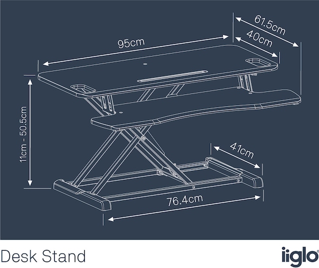 Ställ upp det höj- och sänkbara ergonomiska stativet för ditt skrivbord och arbeta bekvämt var som helst! Iiglo E-Zee Desk Stand är perfekt för ett hemmakontor, så att du kan justera höjden på skärmen, musen och tangentbordet när som helst. Det gör att du enkelt kan växla mellan att sitta och stå under dagen, vilket ger många hälsofördelar som förbättrad cirkulation och minskad muskelspänning.