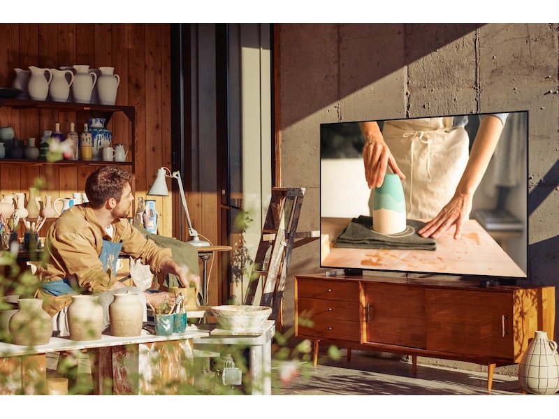 En smidig och skräddarsydd design ger denna TV ett stilrent intryck, vare sig den står på fot eller monteras på vägg.