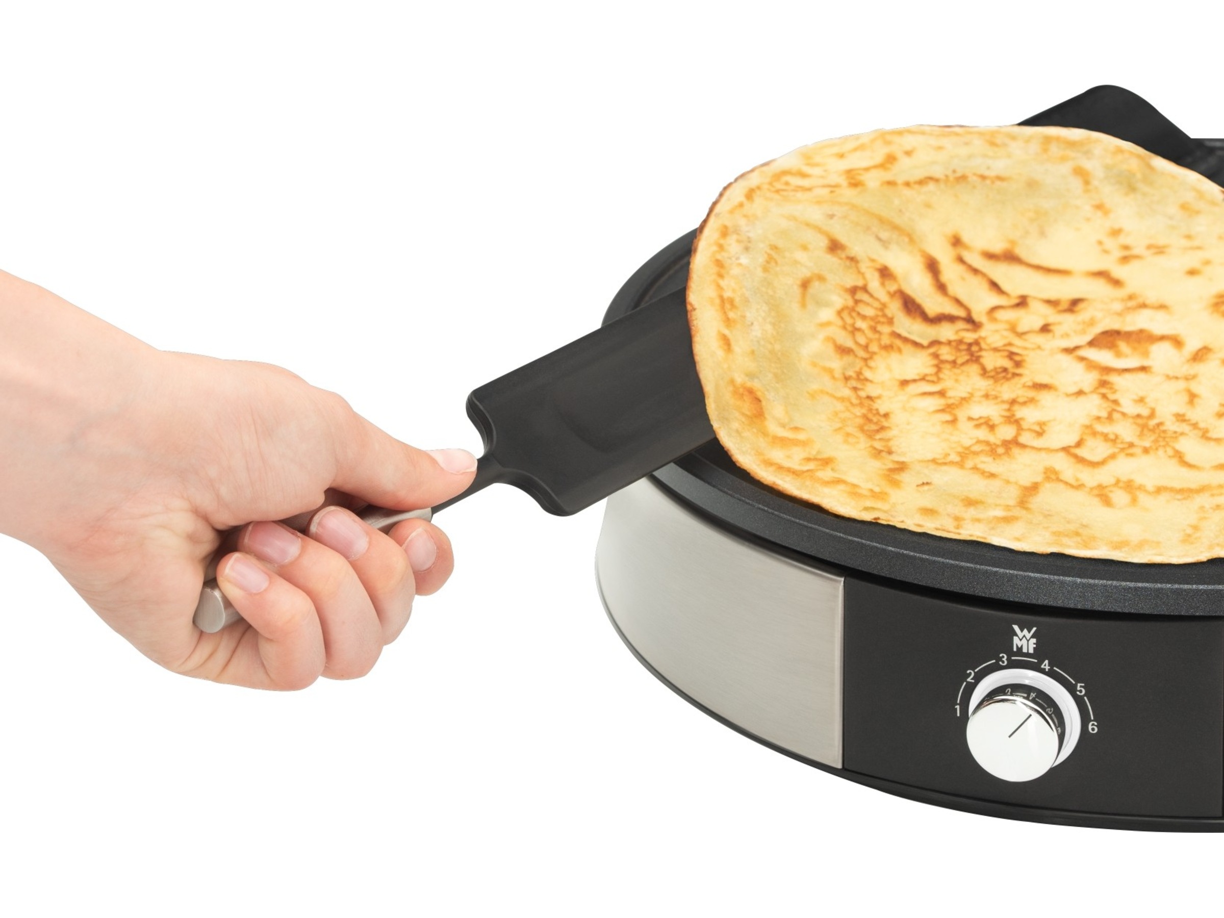 - Smart crêpes-maker (pannkakapanna) med Cromargan® rostfritt stålmaterial.