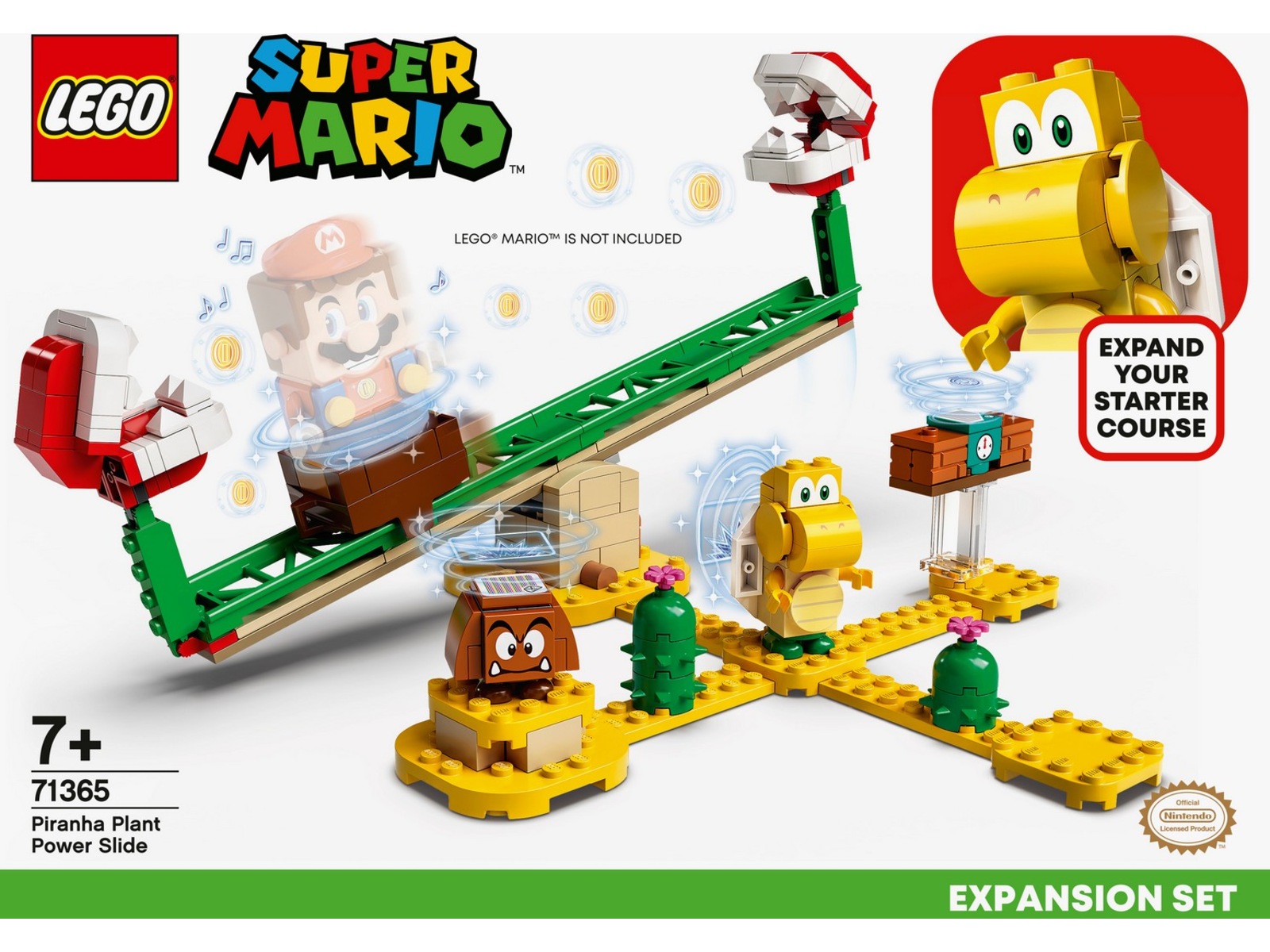 Fans kan lägga till utmaningen Piranha Plant Power Slide till sin LEGO Super Mario värld och träna på att bli ännu bättre på att samla mynt med detta roliga expansionsset (71365).