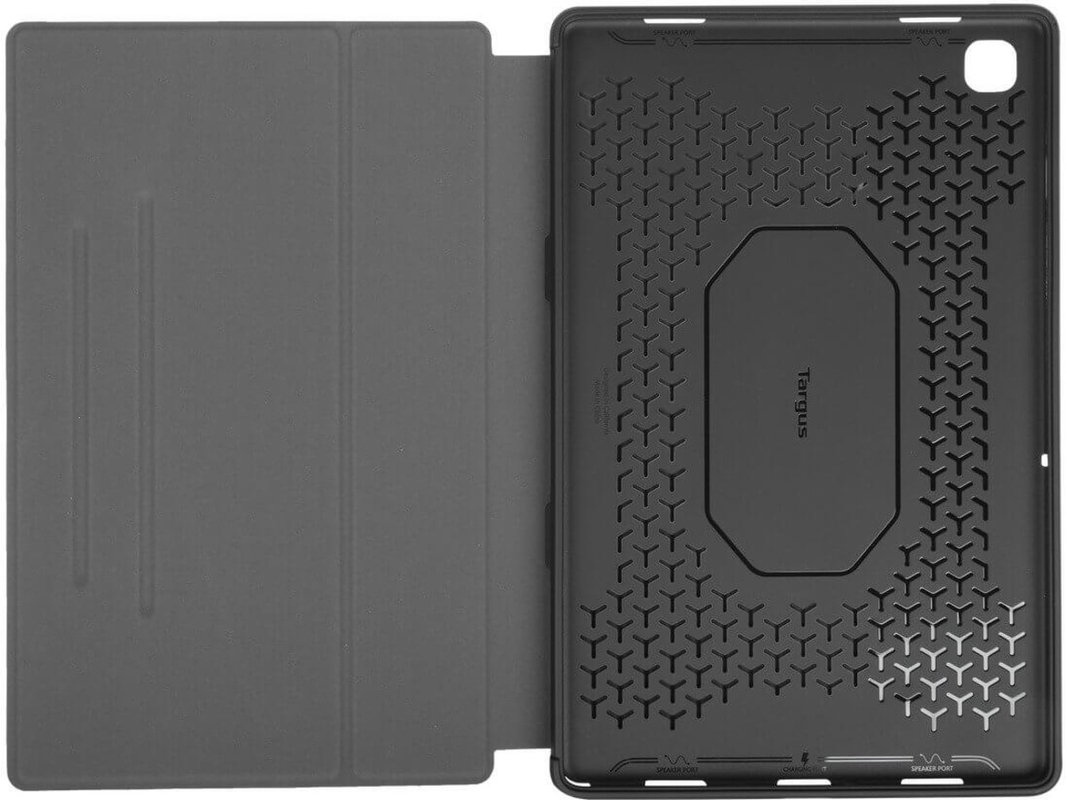 Din väska kan med en enkel handvändning förvandlas till ett robust stativ för bekvämt skrivande. Vänd tillbaka igen för att titta på skärmen. Justerbara betraktningsvinklar gör att du kan anpassa din vy. Njut av extra enkelhet och bekvämlighet med den magnetiska S Pen®-hållaren nära till hands. Precisionsutskärningar ger enkel åtkomst till dina styrenheter, portar och kamera. Till och med ditt ljud får en boost, med den ljudförstärkande designen som leder ljudet tillbaka mot användaren.