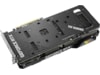 Undersidan av kortet avslöjar en mängd förbättringar. Det mesta av baksidan består av en skyddande metallplatta som framträdande har en bred ventilering. Ventilationen låter varm luft avledas mot chassits avgasfläktar istället för att återvinnas tillbaka till GPU-kylaren. Rostfritt stål används för I/O-fästet för att skydda portarna och ge ett säkrare fäste. En bekvämt placerad Dual Bios-omkopplare gör det möjligt att anpassa kortets standardprestanda-profil utan programvara.