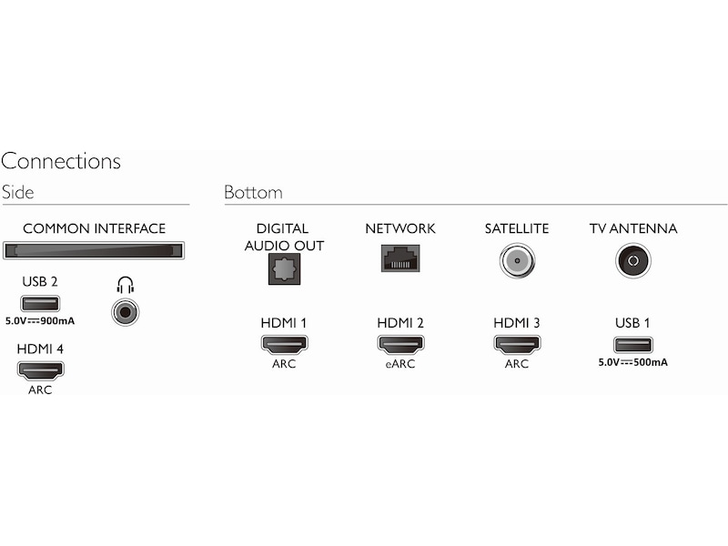 | Anslutningstyp | Hörlurar - sida, 3 x HDMI - nedre del, Digital ljudutgång (optisk) - nedre del, HDMI - sida, LAN - nedre del, USB - nedre del, USB - sida |