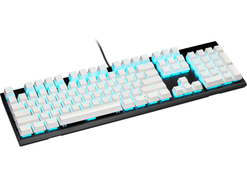 - Tjocka 1,5 mm double-shot-väggar kombineras med ett skarpt, modernt teckensnitt för att ge överlägsen tangenttrycksstabilitet och blekfria bakgrundsbelysta tangenter.