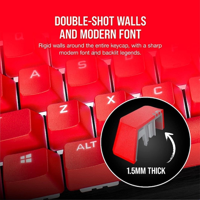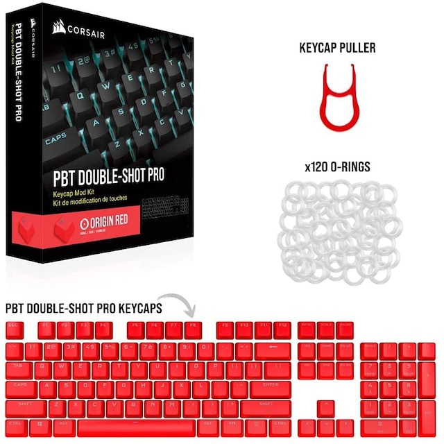 Ett CORSAIR PBT DOUBLE-SHOT PRO Tangent Mod Kit gör ditt tangentbord hållbart och personligt.