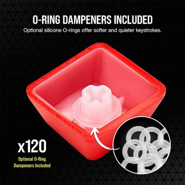 Samtidigt säkerställer de medföljande O-ringsspjällen att du mjukt dämpar tangenttryckningarna för en bekvämare spelupplevelse.