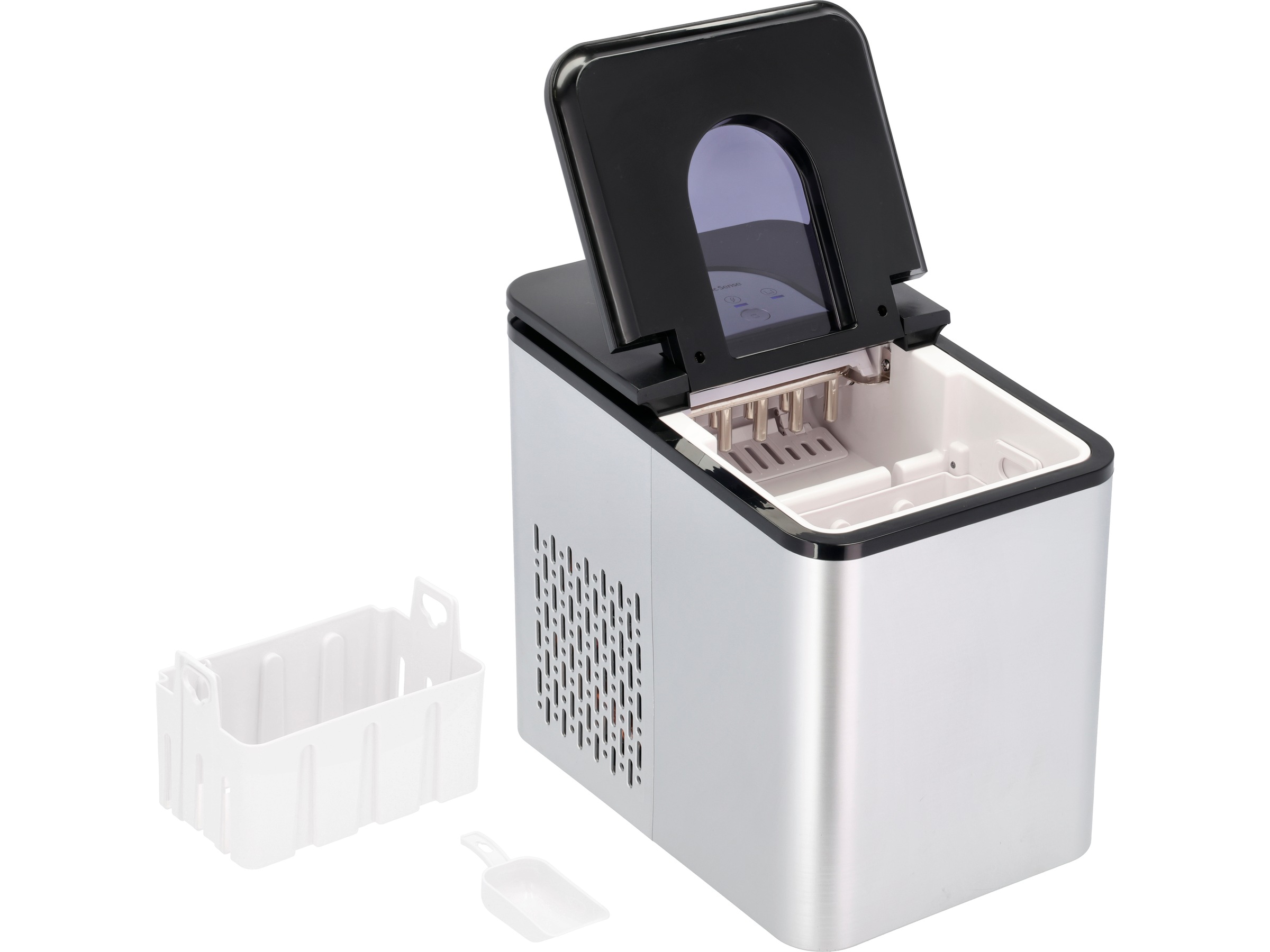 Levereras med en 2,2L vattentank som gör det möjligt att göra 9 isbitar varje gång och 70 isbitar per timme.