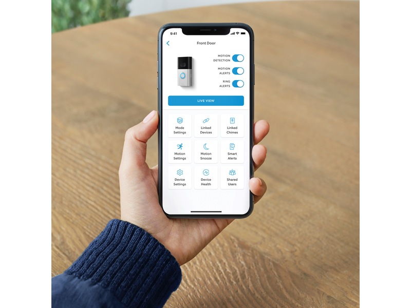 Få förbättrad batteritid och prestanda, 1080p HD-video, tvåvägssamtal, förbättrad tvåbands wifi och pre-roll videoförhandsvisning i färg för att få hela bilden. Få aviseringar i realtid när en besökare trycker på din dörrklocka eller utlöser de inbyggda rörelsesensorerna så att du vet vad som händer vid din ytterdörr, var du än befinner dig.