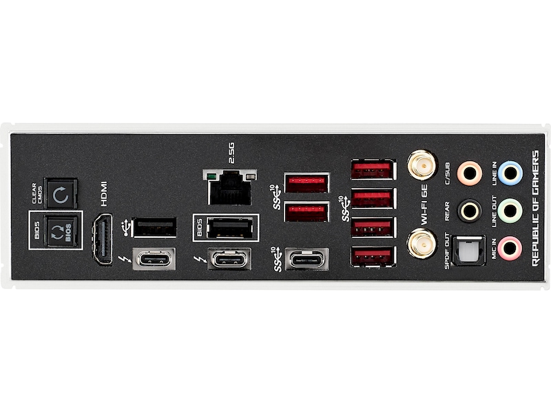• Fastest Gaming Connectivity: PCIe® 5.0, dual Gen 4 M.2 onboard, ROG Hyper M.2 card with Gen 5 M.2 support, USB 3.2 Gen 2x2 front-panel connector, dual Thunderbolt™ 4 (USB Type-C® ports).