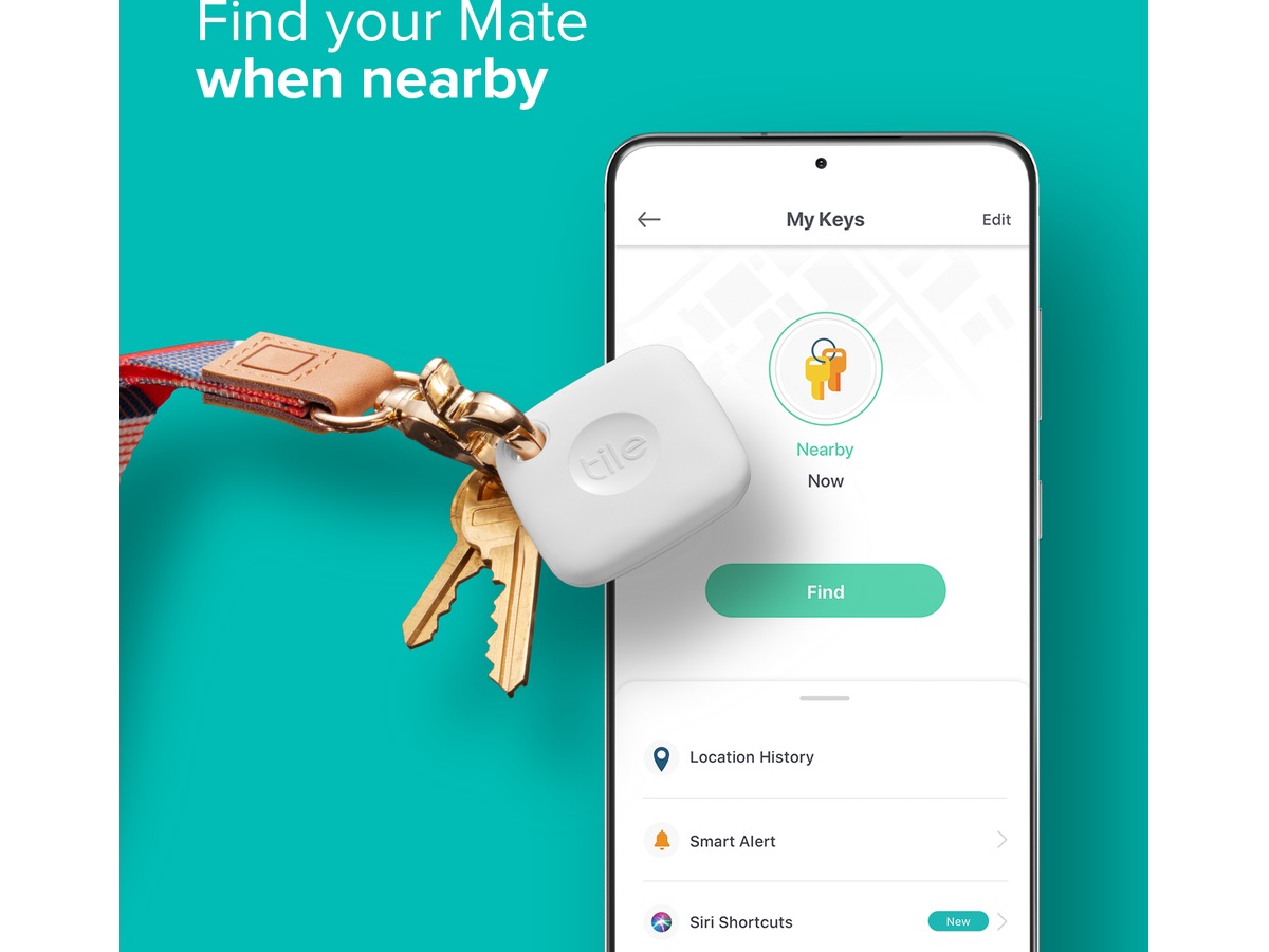 Fäst enkelt Tile Mate på nycklar, ryggsäckar och annat som du regelbundet behöver hålla koll på. Vattentålig med upp till 76 m Bluetooth-räckvidd, hög ringsignal och ett batteri som räcker i upp till 3 år. Öppna bara den kostnadsfria Tile-appen och tryck på Hitta för att lokalisera dina saker. Du kan också dubbelklicka på knappen på din Tile för att ringa upp och hitta din telefon.