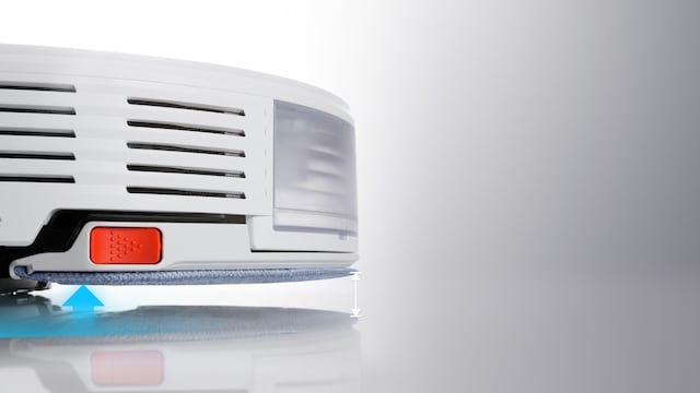 Automatisk funktion som lyfter moppen så att städroboten kan gå mellan mattor och andra ytor på ett smidigt sätt