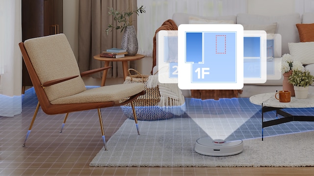 Denna funktion används tillsammans med navigationssystemet PreciSense™ LiDAR som har gjort Roborock till ett känt varumärke. Dessa sensorer läser av omgivningen och använder adaptiva algoritmer som upptäcker hinder som möbler, mattor, kanter, väggar, m.m.