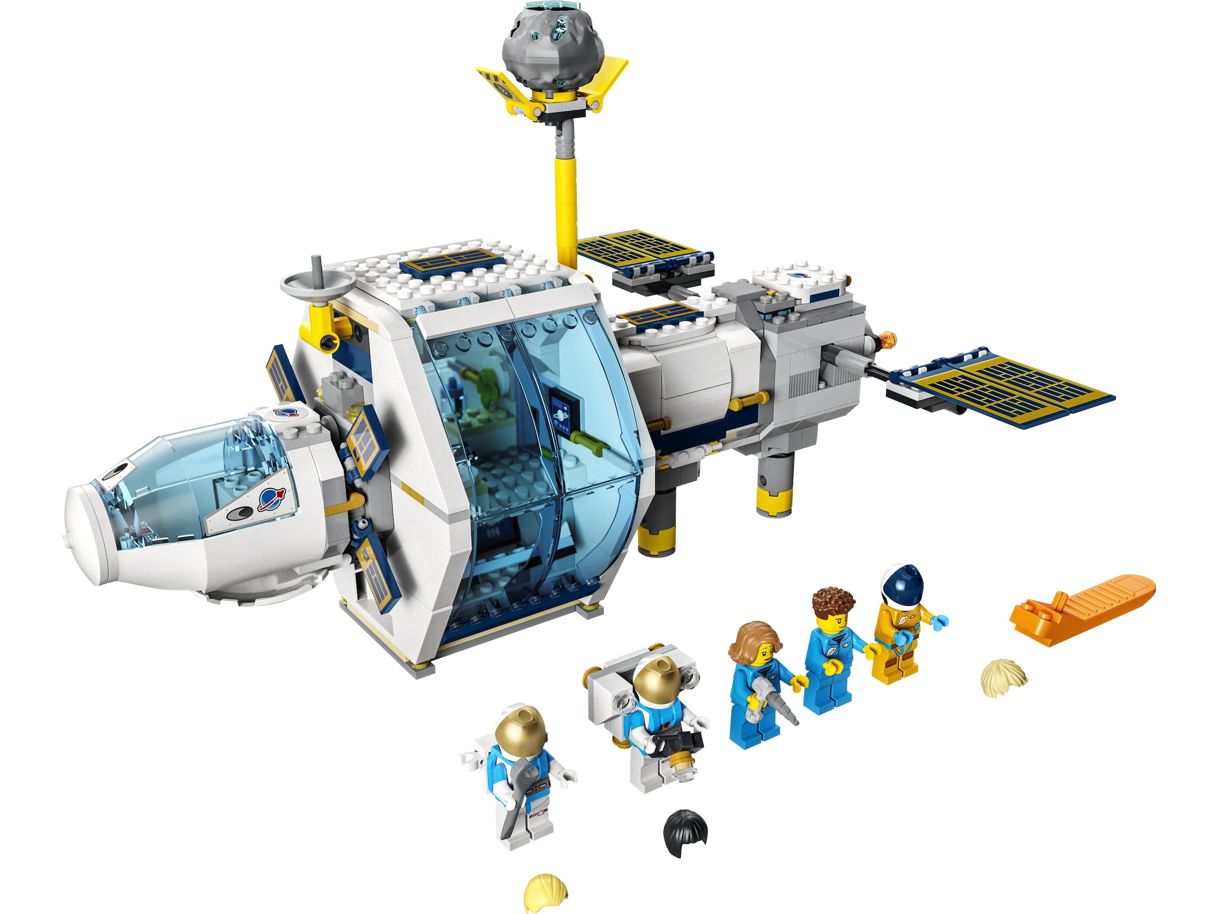 - Vad finns i lådan? – Allt barn behöver för att bygga en månstation med dockningskapsel, plus 5 astronautminifigurer