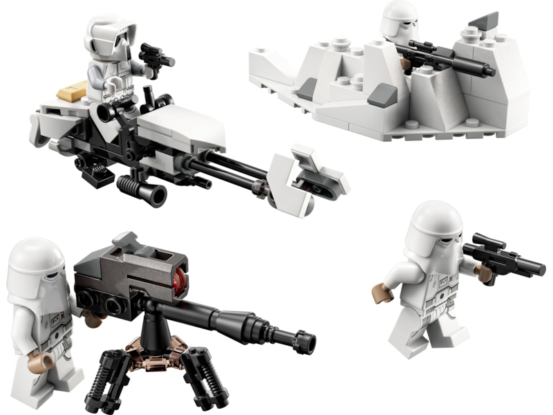 - 4 LEGO® minifigurer – En spaningssoldat från Hoth och 3 snötruppssoldater, plus 2 strålgevär, ett strålvapen och en strålpistol