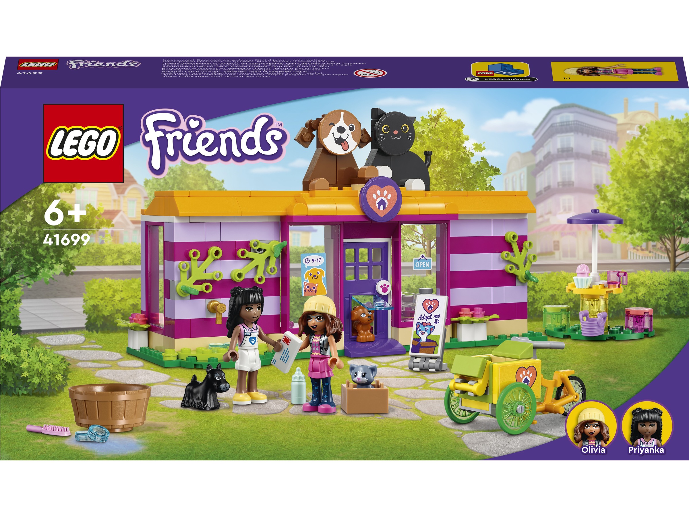 - Massor av lekmöjligheter – Barn kan rädda husdjuren från stan med LEGO® Friends Olivia, vårda dem på centret, servera mat och dryck eller hitta nya ägare till djuren
