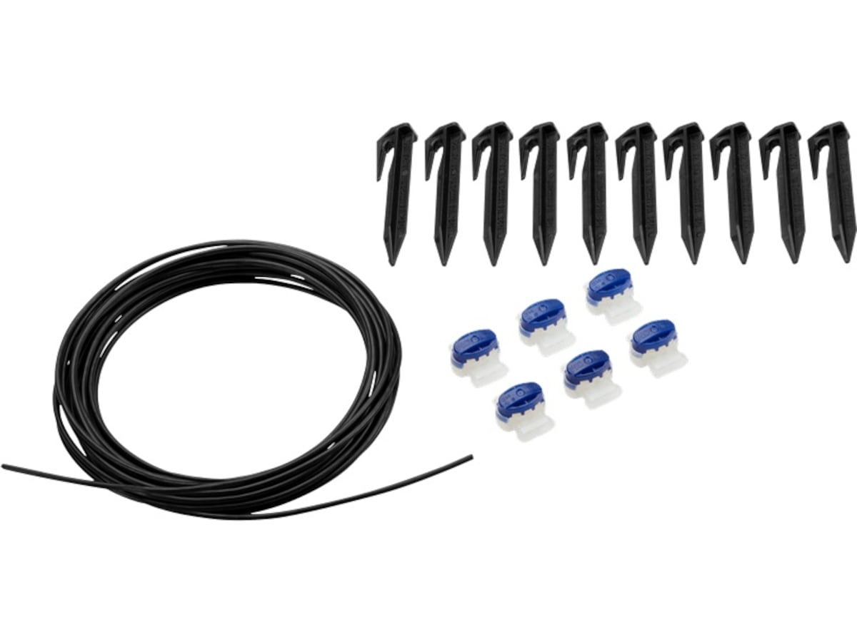 GARDENA reparationssats är perfekt för att fixera begränsningskabeln och för mindre justeringar av klippområdet. Den innehåller 5 meter begränsningskabel, 10 fästelement, 6 kontakter för enkel anslutning mellan befintlig och ny kabel